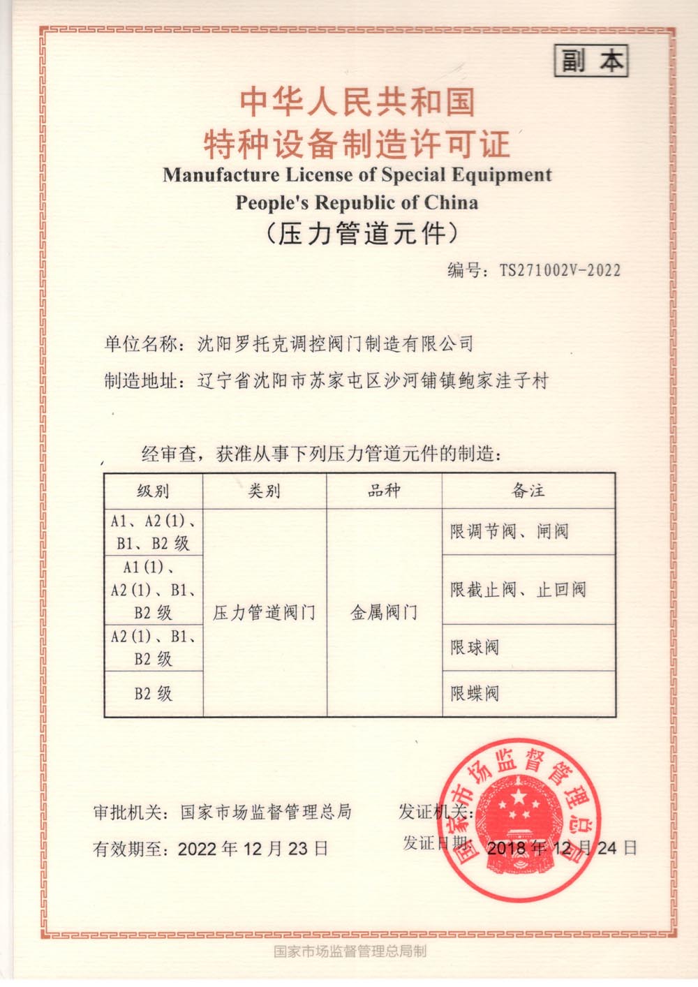 压力管道许可证